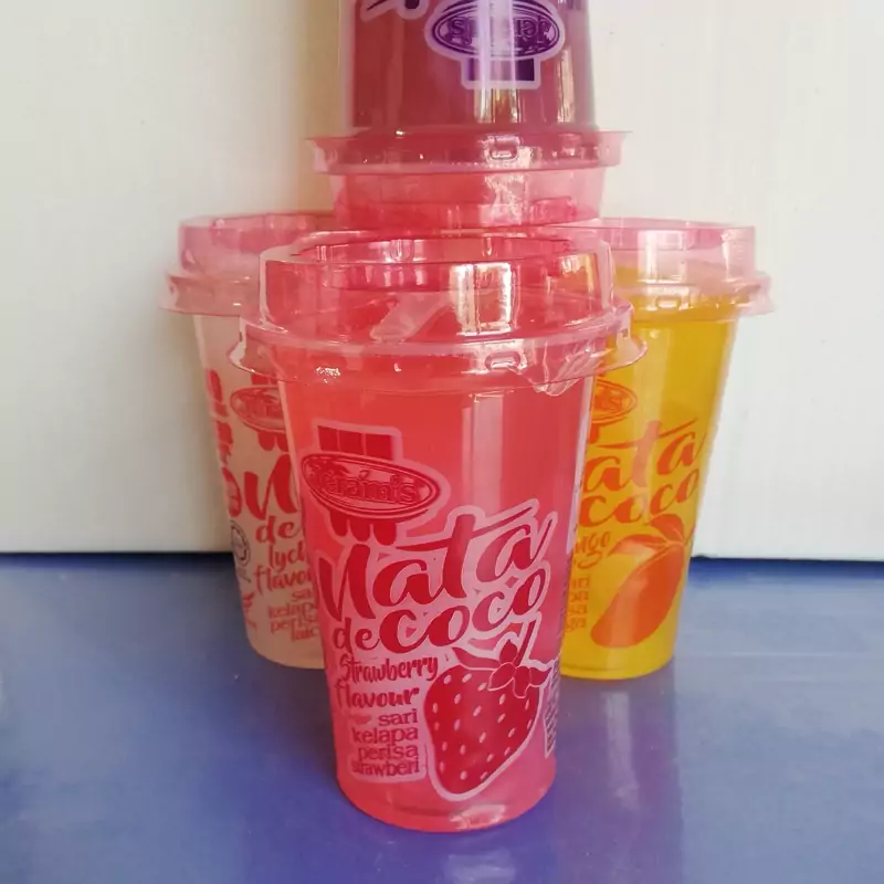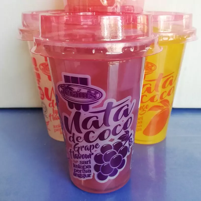محصول مالزی دارای ارم حلال غنی شده با فیبر دارای قاشق یکبار مصرف تیکه های خیلی فراوان نارگیل در چهار طعم.: توت فرنگی انبه انگور لیچی طعم مورد نظر خود را در قسمت گفتگو به ما اعلام کنید